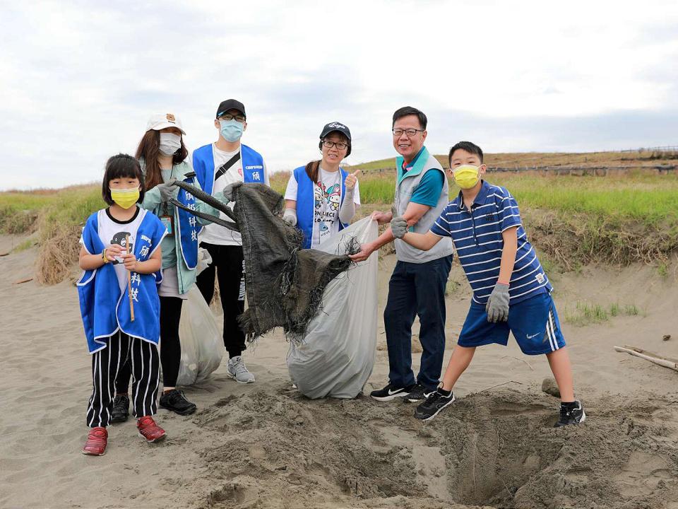 這次淨灘活動號召13個企業學校團體約850人共同響應。翻攝新竹市政府