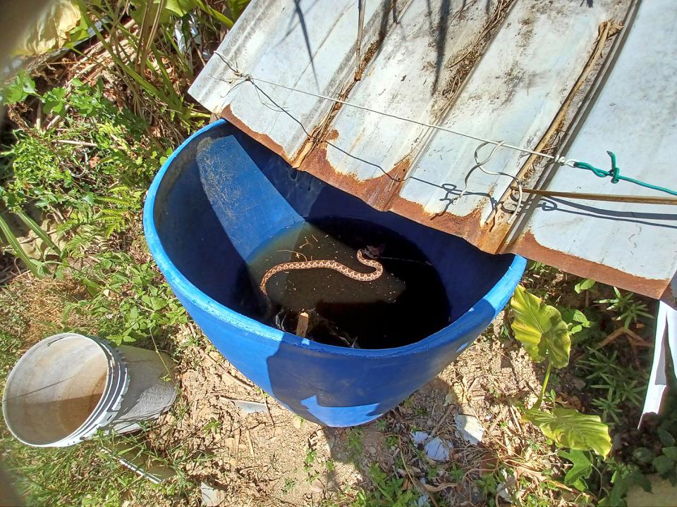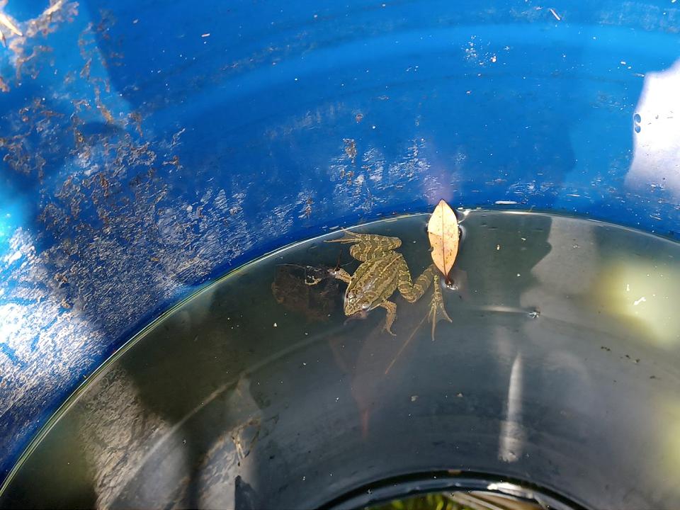 其他蓄水桶中發現有青蛙,懷疑龜殼花捕食過程中不慎受困。翻攝新北市政府