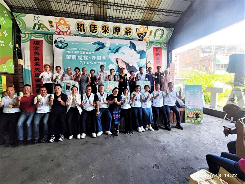 王縣長進一步表示,下午則由花壇鄉農會主辦的「茉莉夏賞 豐韻季」及「茉莉聲聲夜光音樂會」,藉由專業講師(侍茶師、芳療師等)以及茉莉繪本故事引導大家認識「無毒茉莉」。這是花壇鄉農會帶領農民產業轉型,不使用農藥來防治蛾類啃蝕茉莉花苞,栽種出農藥零檢出的茉莉花,並研發多項茉莉飲品,或是結合西施柚與茉莉花香創造小朋友最回味無窮的「茉莉茶柚吸凍」。