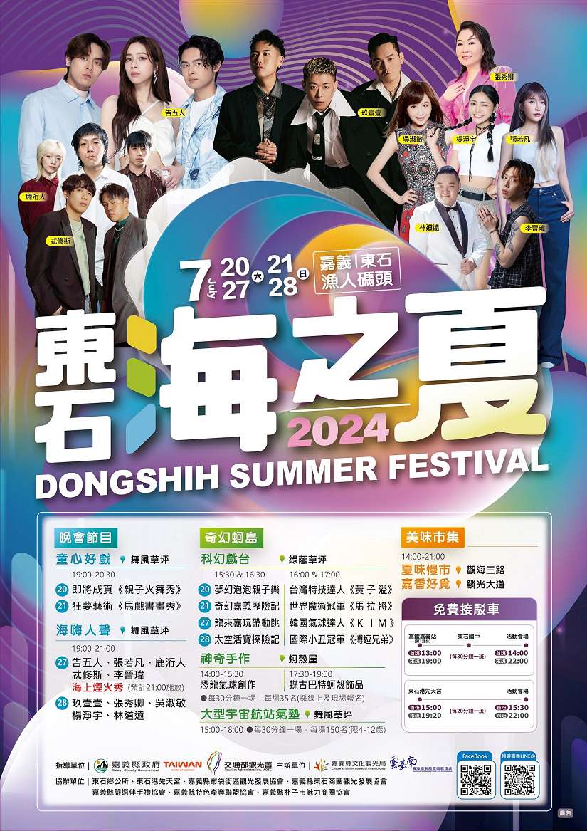 倒數2天!2024東石海之夏將在本周六、日登場,第一周主打親子主題,每天下午2點開始就安排一系列親子活動,包含街頭藝人表演、超大型30米寬宇宙航站氣墊及免費手作DIY體驗,7月20日晚會由「即將成真」帶來「親子火舞秀」,7月21日晚會由「狂夢藝術」帶來「馬戲書畫秀」的互動式演出,讓小朋友從下午玩到晚上,文觀局串聯嘉義縣暑期「親子大玩嘉」集章活動,加碼推出限定親子晚會集章點及限時摸彩券兌換處,歡迎全台爸爸媽媽帶小朋友來海之夏看表演、集章趣、抽大獎。