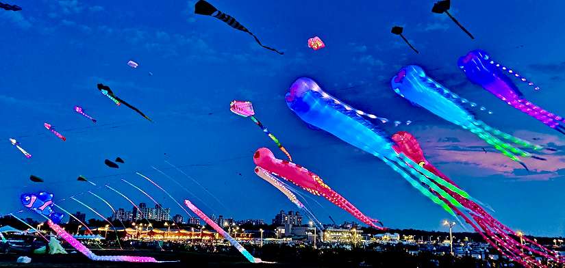 產發處長許智堡表示,本屆風箏節的另一大亮點是壯觀的夜光風箏表演。大型海洋生物夜光風箏在夜空中閃爍,與6米高的飛天龍和15米長的三頭龍地景風動藝術交相輝映,營造出浪漫而神秘的氛圍。觀眾們在兩晚的夜光表演中陶醉其中,享受了一場視覺和感官的盛宴。感謝來自世界各地的風箏選手和愛好者,正是他們的熱情參與和精湛技藝,讓這次盛會成為令人難忘的國際文化交流。