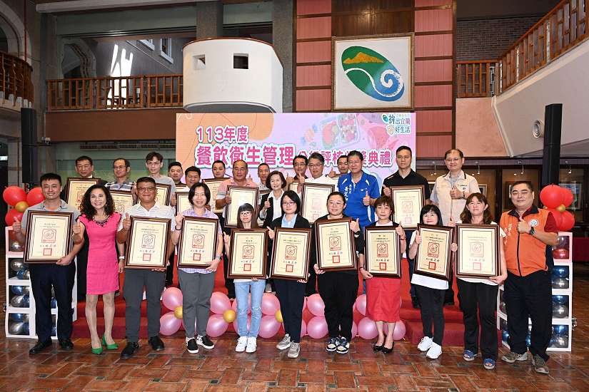 宜蘭縣政府為維護鄉親「食的安全」,提升食品業者自主管理能力,本年度持續針對餐飲業、伙食包或自助餐業、餐盒食品工廠及烘焙業者辦理「餐飲衛生管理分級評核」。經由衛生局人員及專家學者組成評核小組評核後,共計112家優質業者通過評核,榮獲「優」級、「良」級的肯定;並特於(9)日舉辦113年「餐飲衛生管理分級評核」頒獎典禮,由縣長林姿妙親自頒發標章,肯定業者對本縣餐飲衛生安全努力及付出。