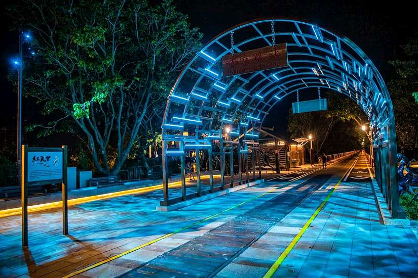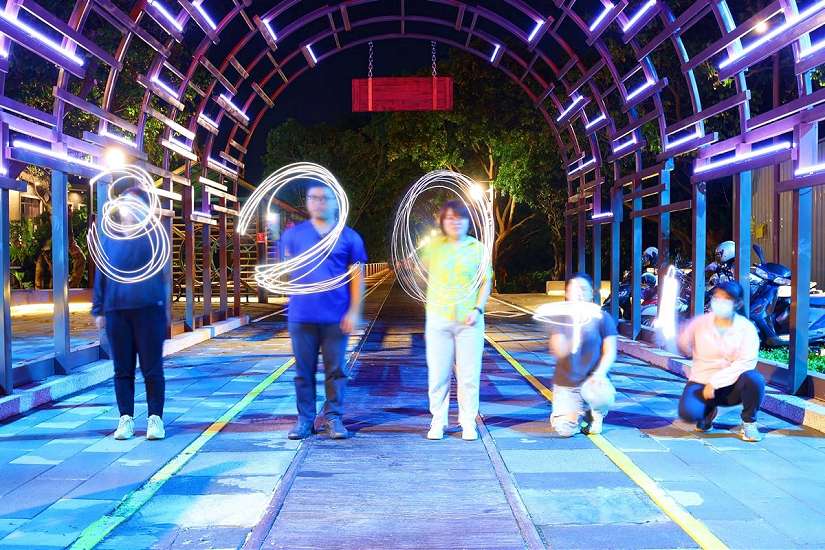 嘉油鐵馬道是嘉義市入夜後最夯的亮點之一,其中位於南京路站高度5公尺、長度10公尺的光廊隧道更是美不勝收,市府歡迎民眾發揮巧思,用「光」玩創意,利用光影塗鴉手法拍攝獨「嘉」美照,打卡上傳「嘉市好旅行」臉書粉專,更有機會抽好禮。