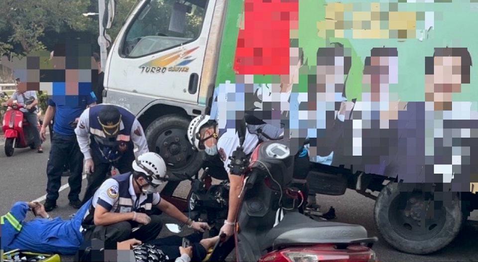賴清德宣傳車運將楊男沒有受傷,不過王男連人帶車摔倒後,遭賴清德宣傳車左前輪輾過,右腳疑似骨折,躺在地上不斷哀嚎..........
