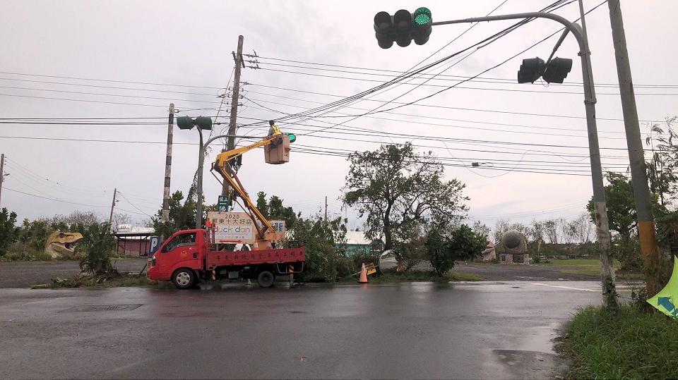 【記者戴英薇/屏東報導】 小犬颱風席捲國境之南,強勁的風雨對恆春半島帶來了巨大的破壞,由於強風、樹木倒塌、水浸等原因,號誌故障及損壞率大增,對駕駛人和行人帶來巨大的不便和潛在危險。在這艱難的時刻,屏東縣政府警察局交通警察隊的號誌維修小組,積極出勤巡查搶修,以確保交通號誌能夠正常運作,給予用路民眾最安全的指引。