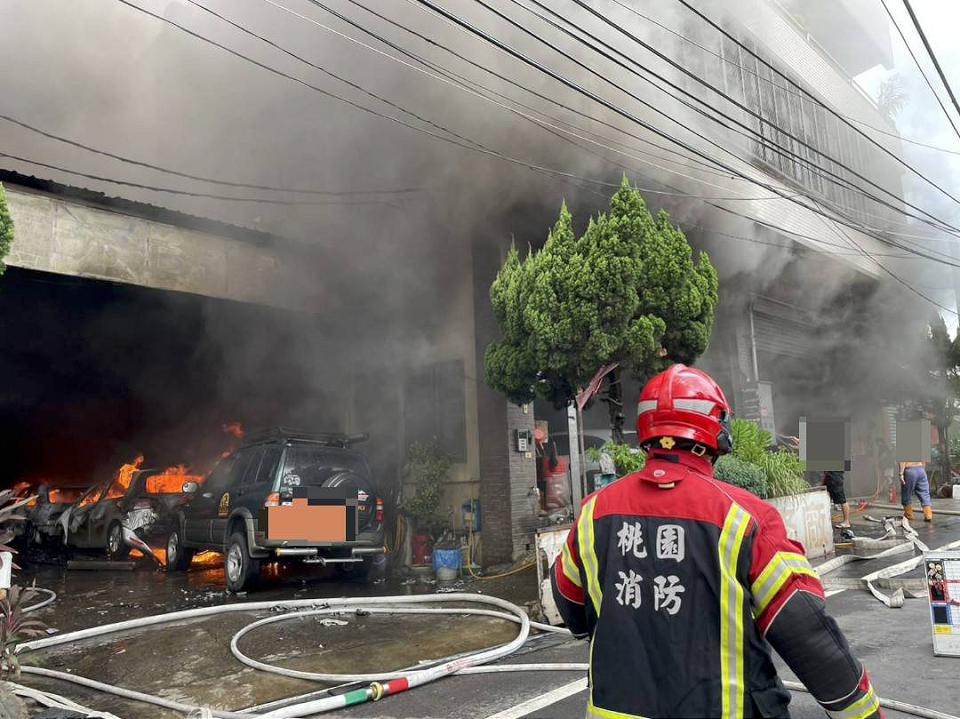 桃園市龜山區1家汽車保修廠,2日中午12時許發生火警,濃煙不斷從場內竄出,停在裡面的車輛已經被火吞噬,警消獲報後立即前往搶救,目前暫時沒有傳出人員傷亡。