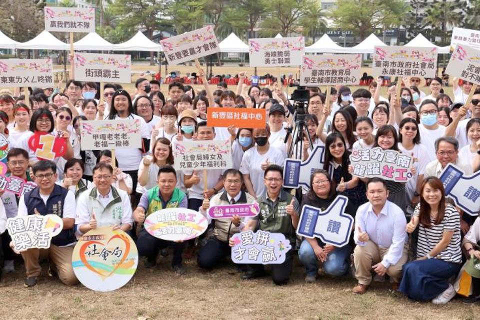 4月2日社工日即將到來,台南市政府為感謝全市社工人員,29日於永華市政中心西拉雅廣場舉辦「113年社工大會師-網絡合作激勵營」,約有300名社工參與。市長黃偉哲並頒發獎狀給南市32位績優社工,承諾市府將從提高待遇及尊重雙管齊下,建構專業制度並落實執業安全保障,讓社工們在執業上更安定。
