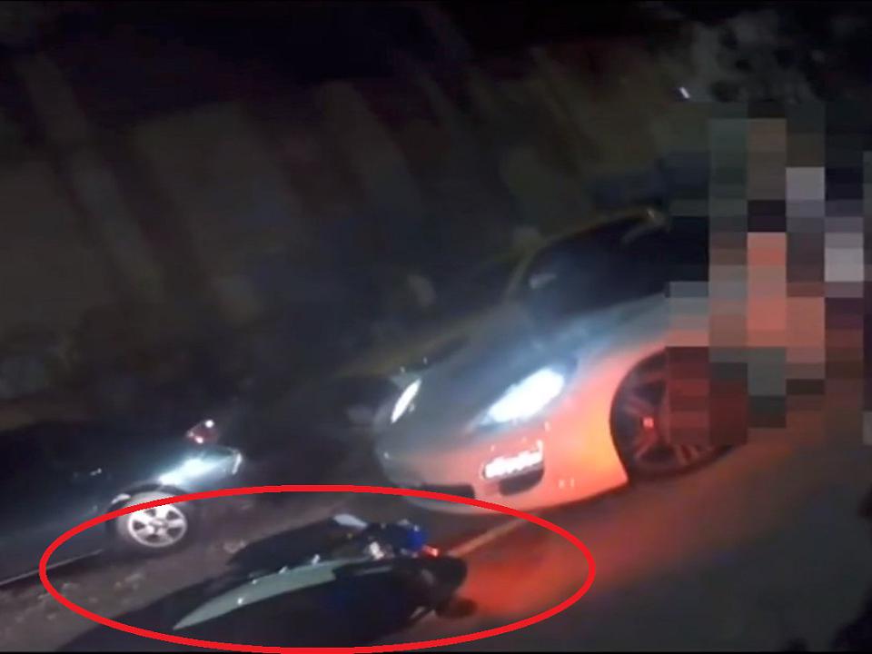 台中市第四警分局員警31日凌晨執行巡邏勤務時,在南屯區向學路與大觀路口發現1輛保時捷,見員警騎車接近時,隨即從路旁駛出後大迴轉,因此員警尾隨上前攔查,並揮手示意路邊停車,不料員警才剛停下車後,竟遭保時捷撞倒機車,還好人及時跳車僅右腳踝扭傷,隨後駕駛下車道歉卻滿身酒味,經酒測值0.51mg/L超標,而當時車上2名妙齡女子,也因此遭連坐處罰。
