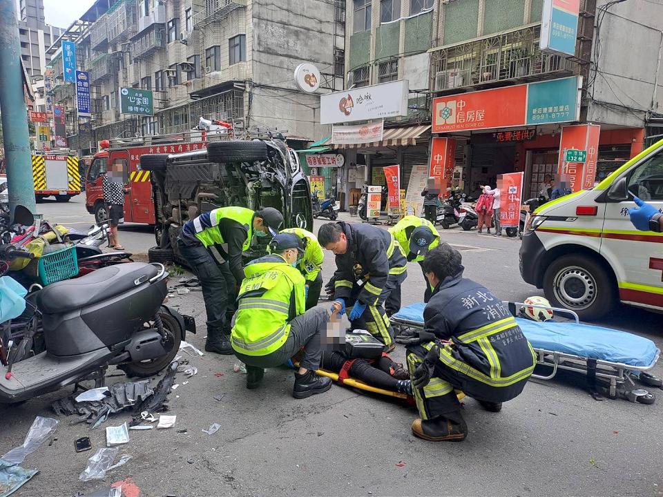 新北市新莊區中港路、公園路口24日13時許,發生賓士車疑似暴衝,將1名70歲老婦壓在車下,當場沒有生命跡象,最後送醫急救宣告不治,這起車禍另外還有9台停放路邊機車受到波及,相關事故發生原因還需要釐清。
