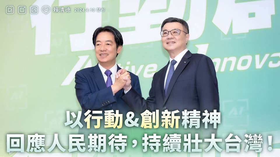 新任總統賴清德10日早上召開記者會,宣布新內閣由卓榮泰接下行政院長一職,並期勉卓榮泰所籌組的內閣團隊,首先要能秉持「行動」與「創新」的精神,形成一個「行動創新的AI內閣」(active and innovative cabinet),能夠聽取民意以解決民瘼,回應人民的期待。