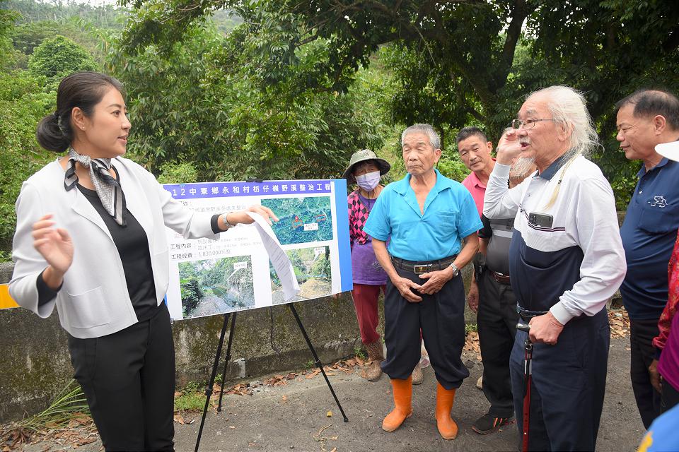 縣長許淑華日前到草屯博愛路北投段,了解946地號農路及水圳狀況,並聽取工程簡報,因為當地部分農路需整理,無柵欄防護的水圳需加裝護攔,避免民眾不小心掉進水溝,許多民眾希望縣府趕快發包改善。縣府調查,新庄農地重劃區緊臨水圳的農路,部分路段無安全護攔外,農路路面破損,因此實地了解後,決定重新鋪設路面,對於水圳加裝防護柵欄。