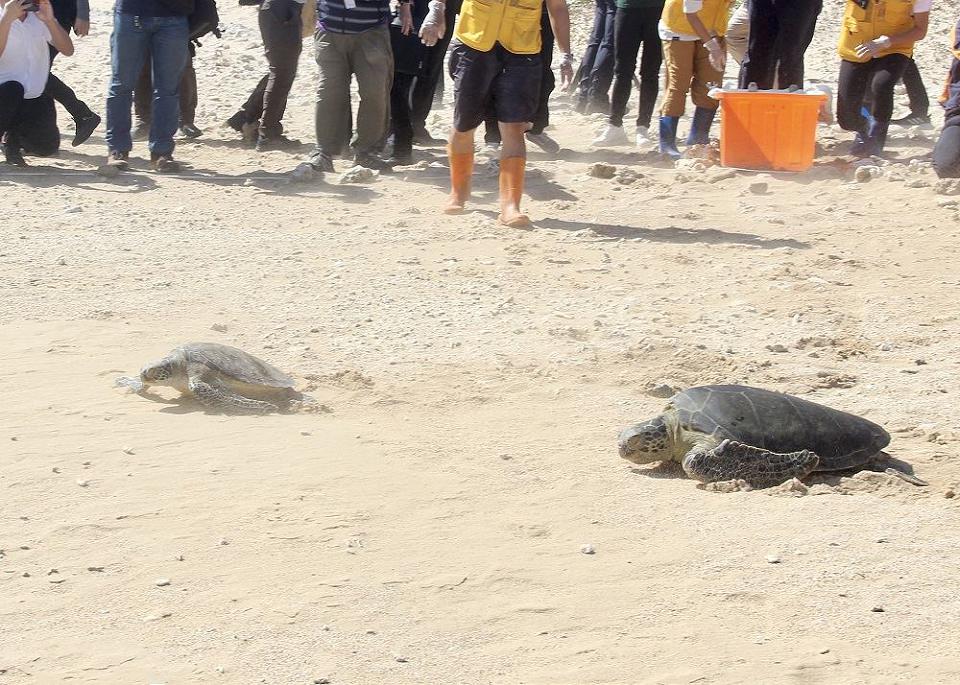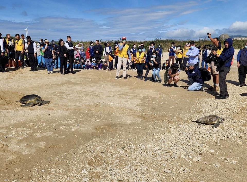 這次野放的2隻海龜都是透過MARN成功救援的案例;一隻體型較大(體重29.17公斤)是今年3月27日於琉球鄉天福漁港旁沙灘被發現遭漁網纏繞,且嘴邊殘留魚線,另一隻體型較小之幼龜(體重8.64公斤),則是7月7日遭漁船流刺網誤捕混獲,經漁民通報台東金樽安檢所而獲救。經過海生館獸醫檢查醫療,與細心照養後,經評估已康復因得以野放。在副總統賴清德、縣長周春米和小朋友的祝福及加油下,2隻海龜都順利回歸大海。