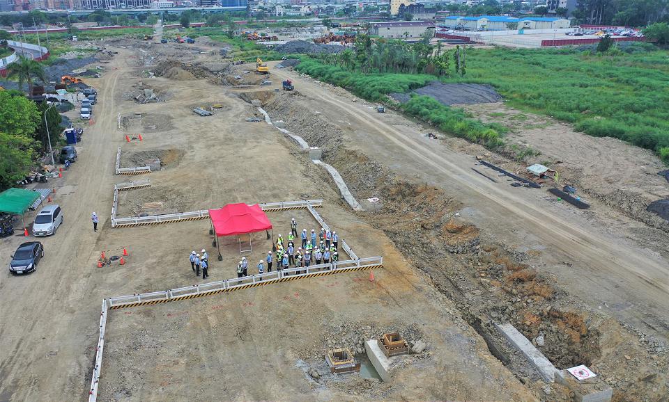 新北市塭仔圳重劃區工程,正在進行中。(新北市地政局提供)