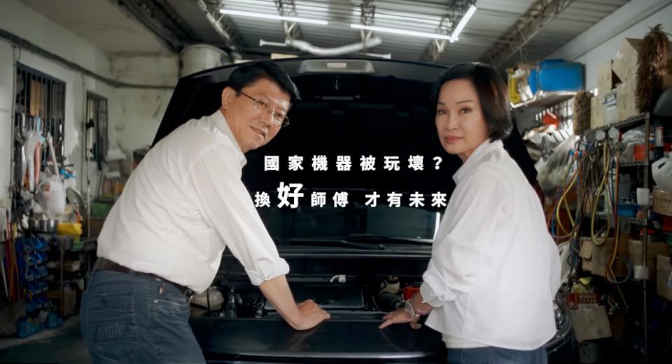 今天(1/11)上架的國民黨競選廣告《國家機器被玩壞?換好師傅,才有未來!》,場景是在修車廠,主角是國民黨不分區立委候選人的謝龍介與柯志恩,一開始扮演修車師傅的謝龍介和客人柯志恩兩人在車子底盤下檢視車輛。