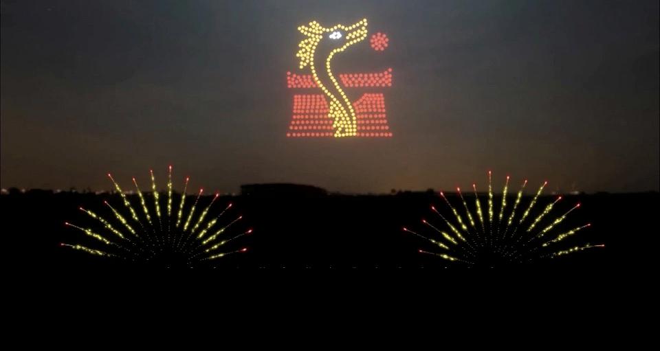 燈會期間特別規劃結合無人機、煙火、雷射及燈光秀空中展演。翻攝台南市政府