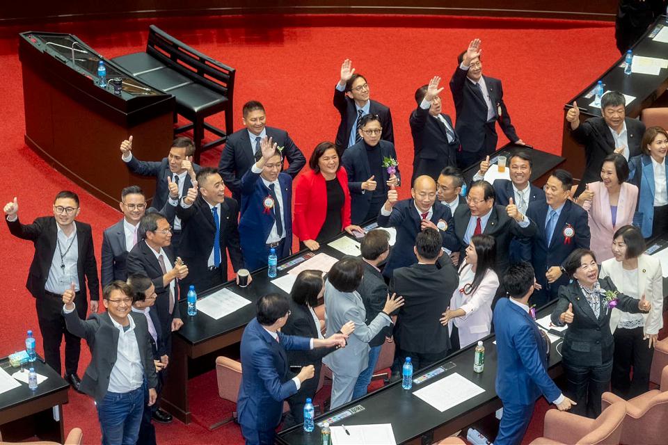 國民黨立委對於韓國瑜當選立法院長都相當興奮。翻攝韓國瑜臉書