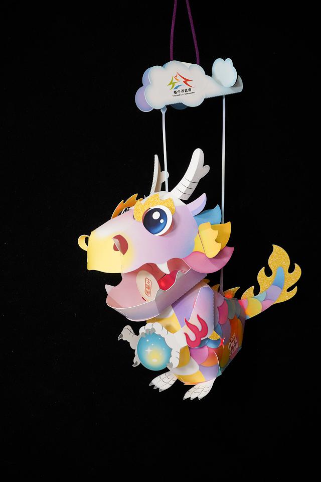 「台中龍賀!」元宵燈會將於2月16日在全台最大都會公園台中中央公園閃耀登場,今年的「馬卡龍」小提燈,將傳統的東方神龍造型公仔化,手拿龍珠、嘴吃台中餅,以馬卡龍色系展現龍鱗層次,眉毛及背鰭用金色點綴,更顯年節喜氣及華麗感,由於可愛度爆表,讓許多人都希望能拿到。