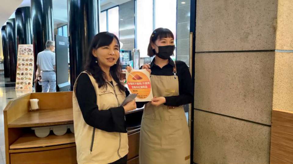 台南市衛生局查核「本場所不提供/不使用含蘇丹紅調味品」標章張貼成效。翻攝台南市政府