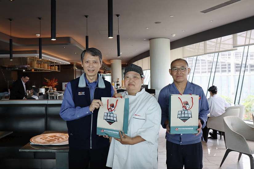 勞動節快樂!新北市勞工局長陳瑞嘉今(1)前往Mega50餐飲及宴會所屬的50樓Café自助餐廳,代表侯友宜市長祝福出勤員工勞動節快樂,感謝餐飲業勞工總是犧牲假期為市民朋友補充元氣。陳瑞嘉也與兩位中高齡員工寒暄,感謝去年獲得中高齡者友善職場卓越認證的Mega50,持續提供中高齡勞工就業機會和友善措施,成為企業的標竿表率。