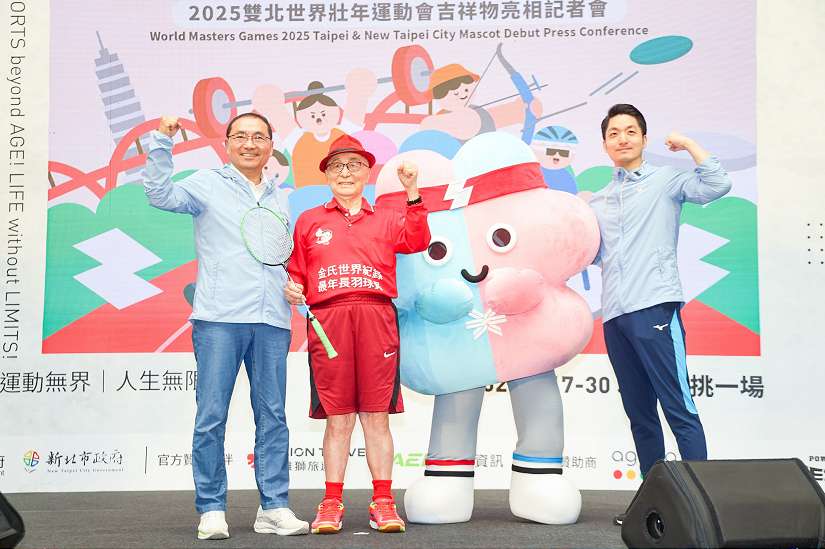 「2025雙北世界壯年運動會」將於明年5月17日至30日舉辦,為增加賽會曝光度及民眾關注度,昨日於臺北市市政大樓,新北市長侯友宜、臺北市長蔣萬安共同出席「2025雙北世界壯年運動會吉祥物亮相記者會」,與世壯運吉祥物Strong一起賣萌;記者會特別邀請備戰世壯運的百歲人瑞林友茂先生對吉祥物發出羽球戰帖,最萌年齡差就在2025雙北世界壯年運動會,6月17日前報名,享7折優惠。