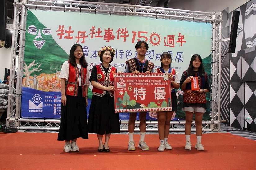 周縣長頒獎給牡丹社事件繪本得獎學校,國中組特優為牡丹國中《時空畫廊》,國小組特優為滿州國小《大尖山的凝望》。滿州國小學生潘郁涵與周子純分享,過去很多歷史漸漸被遺忘,藉由創作繪本重新了解自己居住的土地,是過程中最可貴的地方。