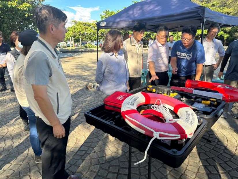 日前海洋委員會主委管碧玲率領其團隊至臺南市觀夕平台,訪視市府在「智慧海灘總體規劃暨提升近岸海域遊憩活動安全工作」執行成果及規劃,由副市長葉澤山率領觀光旅遊局及消防局共同接待與說明,現場展示了空拍機及遙控救生圈之情境演練,管主委對器材操作、人員執勤狀況等關心詢問,事無鉅細訪視至整個下午時段,展現對近岸海域遊憩安全的重視。