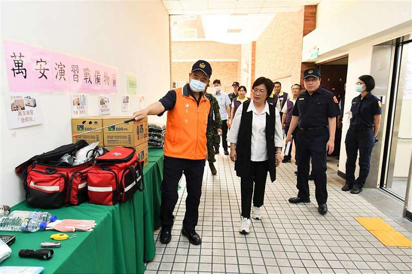 警察局表示,同時彰化縣警察局動員警察人員及協勤民力演練「空襲警報傳遞與發放」、「戰時交通及燈火、音響、門窗管制」、「戰時特種防護團空襲防護編組」、「戰時攜行個人緊急避難包防空避難」、「戰時下車旅客及接送親友防空疏散避難」及「戰時下交流道車輛防空疏散避難」;另彰化縣消防局動員消防人員及裝備器材演練「戰時彰化高鐵站遭敵飛彈襲擊倒塌救援」、彰化縣衛生局動員醫護人員及裝備器材演練「戰時彰化高鐵站大量傷病患救護站緊急開設」及彰化縣政府社會處動員社政人員及裝備器材演練「戰時災民收容救濟站開設」,演習中彰化縣各參與演練人員動作純熟逼真,展現平時紮實訓練成果。