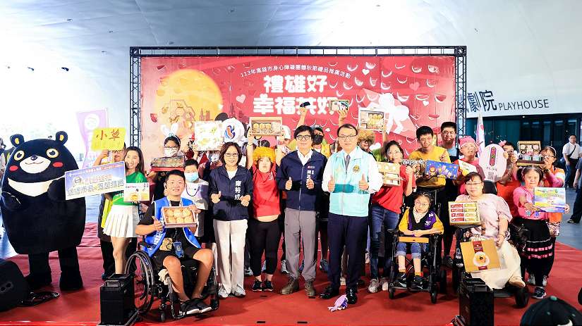 為推廣高雄市身障團體中秋節禮盒,市長陳其邁日前出席衛武營榕樹廣場舉辦「禮雄好,幸福共好」秋節禮品推廣活動,現場頒發感謝狀予認購滿額企業、個人,並感謝國際獅子會300E-5區擔任公益推廣大使,宣布市府去年購買800盒秋節禮品,今年加碼到1,000盒,更化代言人至各展示攤位參觀、推銷、逐一為身障團體加油打氣。強調禮盒內容豐富、多元,是身障朋友認真、用心的作品,有吃又有拿、好吃又實用,邀請大家發揮愛心,用實際行動力挺身障團體。