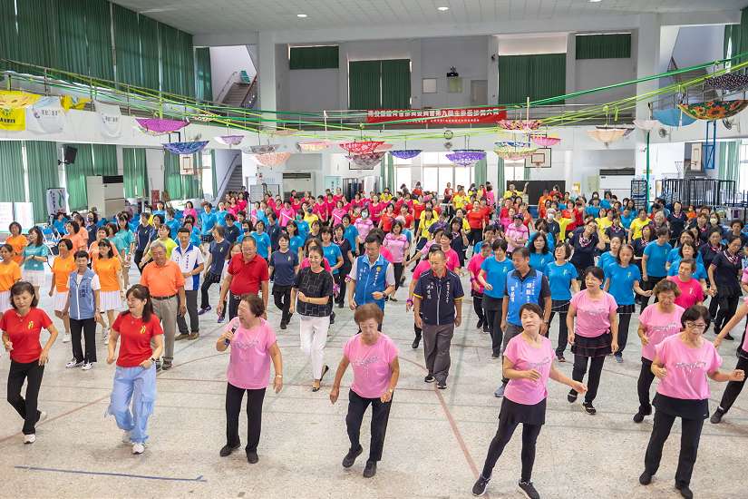 13年運動i臺灣「多元舞藝運動嘉年華-南投縣體育會排舞委員會第九屆主委盃排舞大賽」25日在南投市漳興國小盛大登場,368位資深美少女齊聚一堂大秀舞姿、以舞會友,縣長許淑華也到場與大家共舞,一起感受舞蹈運動的樂趣。