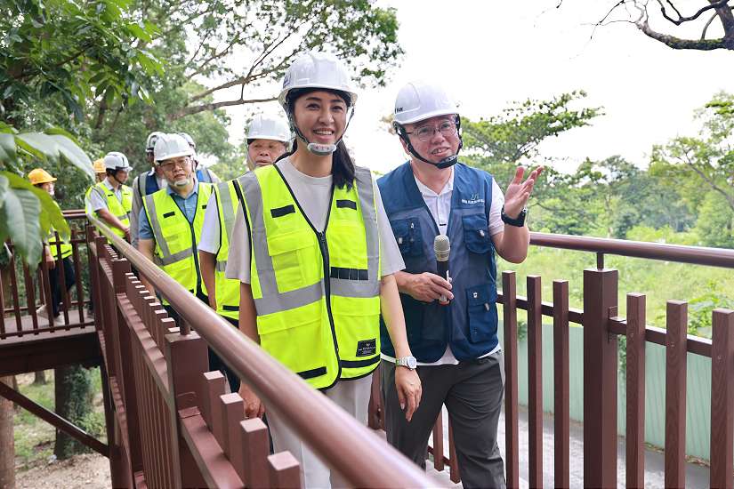 許縣長同時鼓勵施工團隊,除了順利進行工程,更要減輕對生態環境影響,經由友善設計,做好生態保育;由於園區發現石虎棲地,施工團隊妥適處理野狗問題,也用心保護原有樹木及生態環境,樂園的每一塊磚、每一個結構,展現專業技術,同時也是帶動南投觀光發展的重要建設。