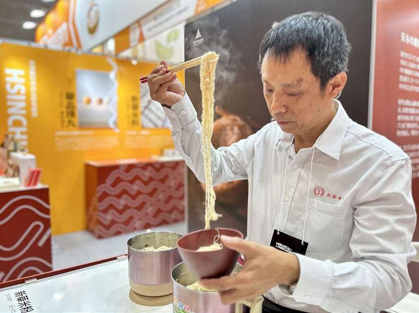 產發處說明,新竹以九降風著稱,是孕育絕佳風味米粉的優質產地,此次參與日本關西食品展的米粉廠商,為來自竹市的老鍋米粉與新華米粉,帶來經過多道工序的傳統米粉,其細緻柔韌的口感並富有彈性,水煮、乾炒皆有其特殊風味而深受大家喜愛,現場試吃人潮也給予一致好評。現場也展示來自海瑞摃丸與華品摃丸的優良產品,新竹摃丸業者始終堅持以新鮮豬後腿肉為原料並配合一定步驟工序,不斷精益求精,始終展現新竹摃丸高標準的飲食文化。