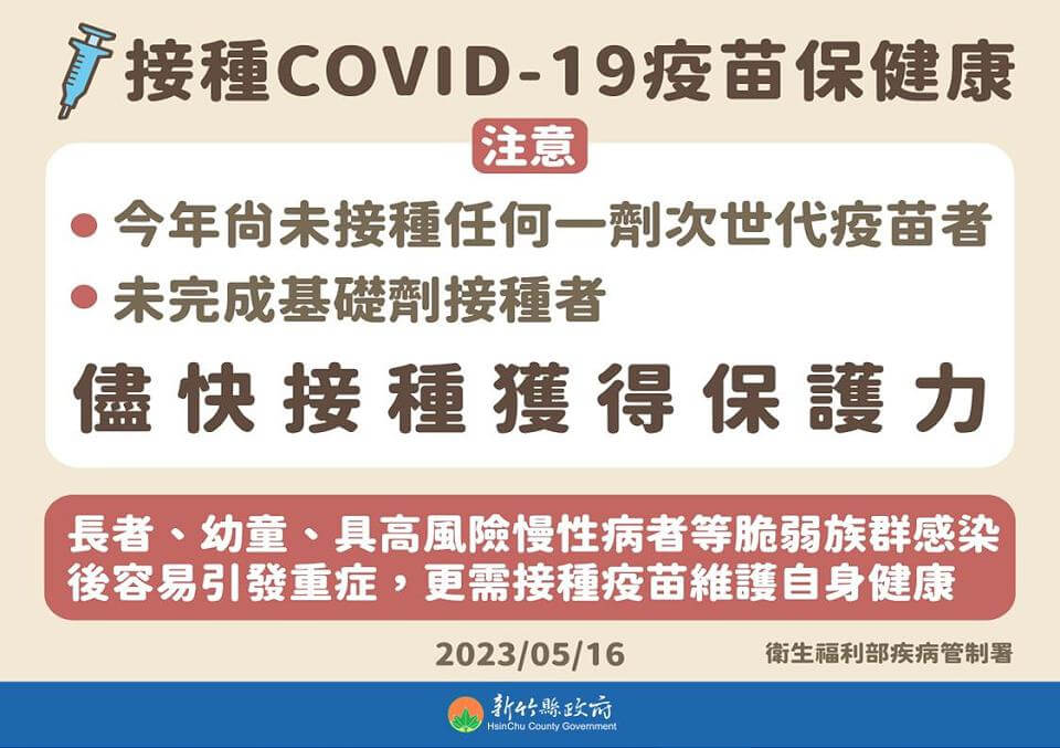疫情有緩升趨勢,新竹縣衛生局鼓勵施打疫苗。翻攝新竹縣政府