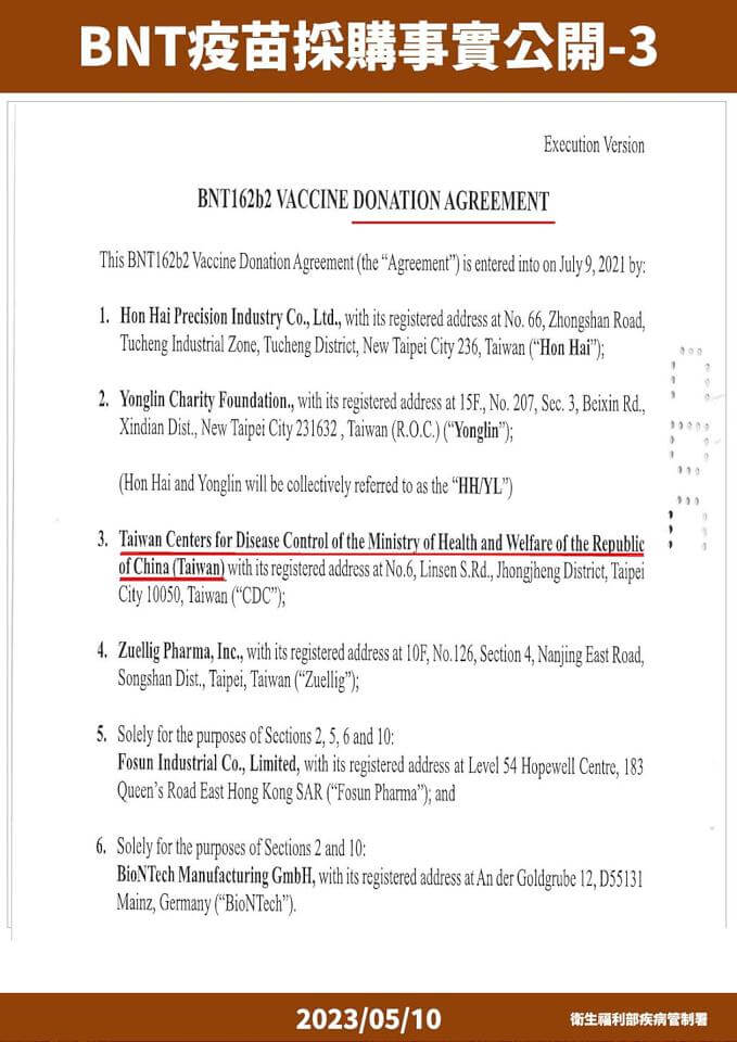 衛福部疾管署以不違反保密協議下,公布BNT採購內容。翻攝衛福部疾管署
