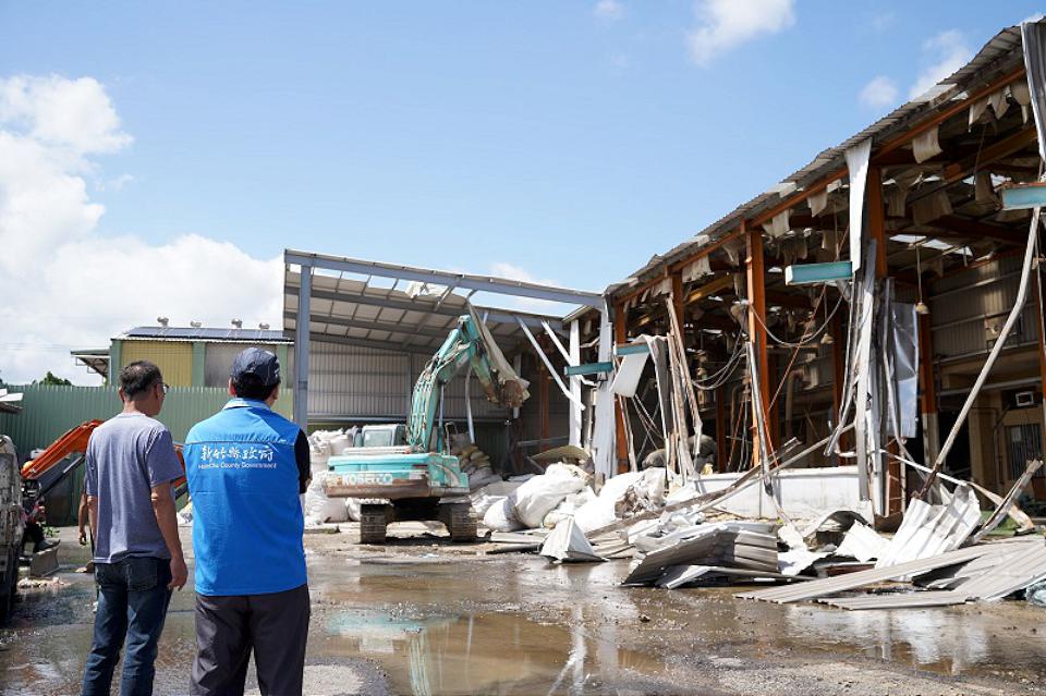 新竹縣政府工務處副處長陳盈州表示,這塊地為乙種工業區,作為無污染性工廠使用是合法的,但原先廠房合法面積近3300平方公尺,,後續未經合法途徑,自行分別在合法建物的東西南北方向擴建,以鐵皮方式施作違法增建面積約1500平方公尺,違反建築法部分無法補照,因此縣府執行公權力強制拆除增建部分建物。