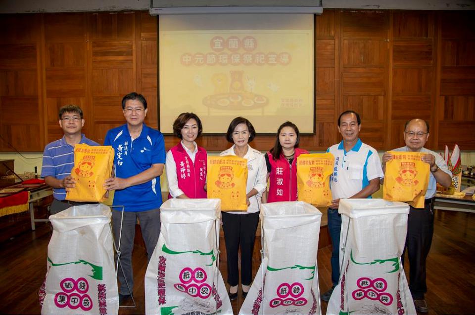 農曆七月中元祭祀是國人傳統宗教禮俗,但祭拜時常伴隨焚燒大量香支及紙錢,有影響健康及空氣品質之虞。宜蘭縣政府多年推廣紙錢減量及集中焚燒,111年統計已達759公噸,估計減少空氣中細懸浮微粒(PM2.5)污染達2.09公噸,今年呼籲縣民可到各鄉鎮市公所索取紙錢減量集中袋,同步推展與響應環保低碳祭祀行動。