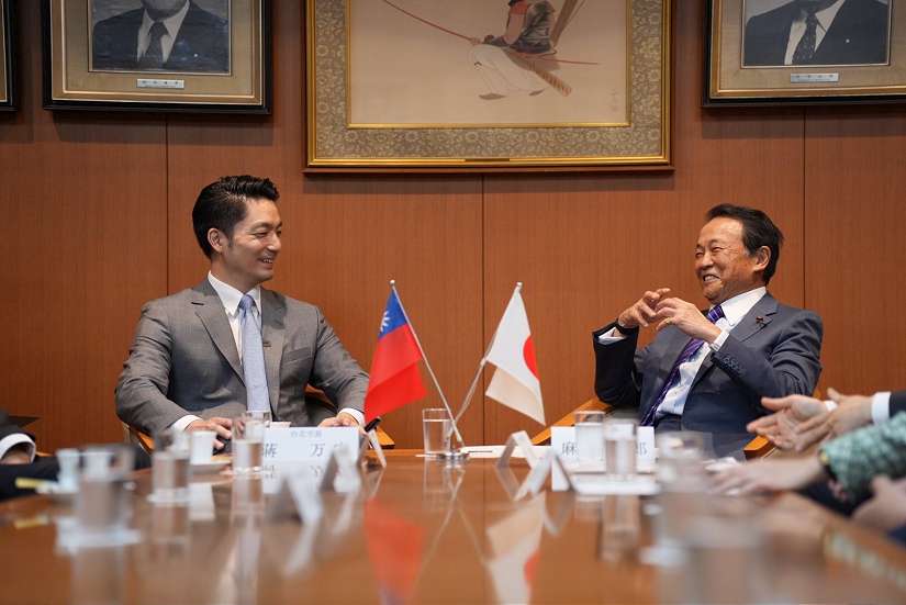 臺北市長蔣萬安一行人15日抵達日本後,第一站前往自民黨黨部拜訪自民黨青年局。拜會的一開始,他特別致贈木柵鐵觀音茶葉製作的萬壽菊茶酒與代表北市城市意象的101餅乾禮盒,謝謝鈴木貴子局長在臺北時就邀請到東京時來青年局一聚,也期盼兩市交流長長久久。鈴木貴子回贈蔣市長北海道故鄉的千歳鶴酒和白鶴造型的和菓子做為回禮,並表示鶴是和平跟長壽的象徵,也祝願蔣市長喝了就能長壽、雙方情誼長存。
