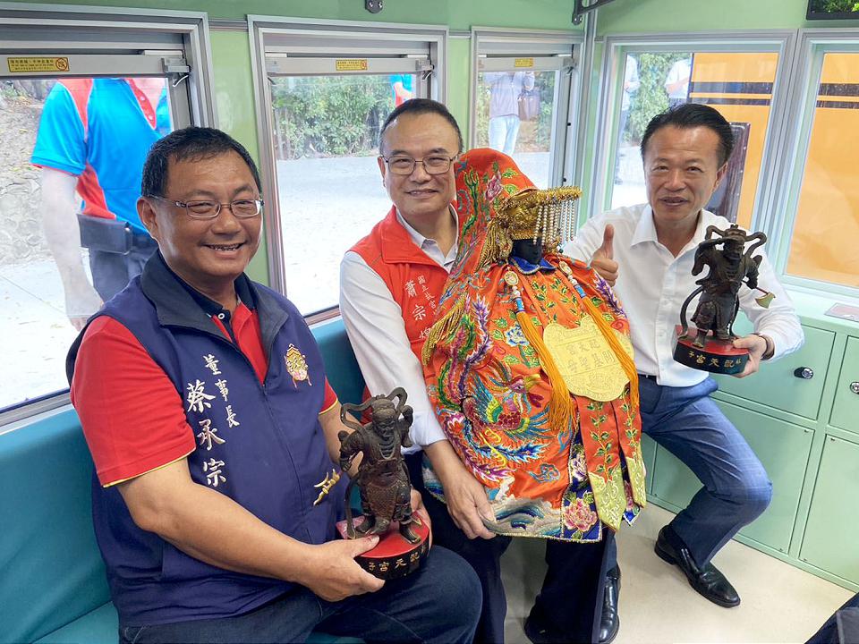 嘉義朴子配天宮12年一科的海表聖會巡安賜福遶境活動,1日上午開基媽祖、二媽及三媽首度遶境故宮南院,並搭乘最新糖鐵五分車至蒜頭糖廠,中午開基媽祖停駕縣府,縣長翁章梁率領各局處長及同仁於縣府大廳舉辦迎駕儀式,向樸仔媽上香祈福。