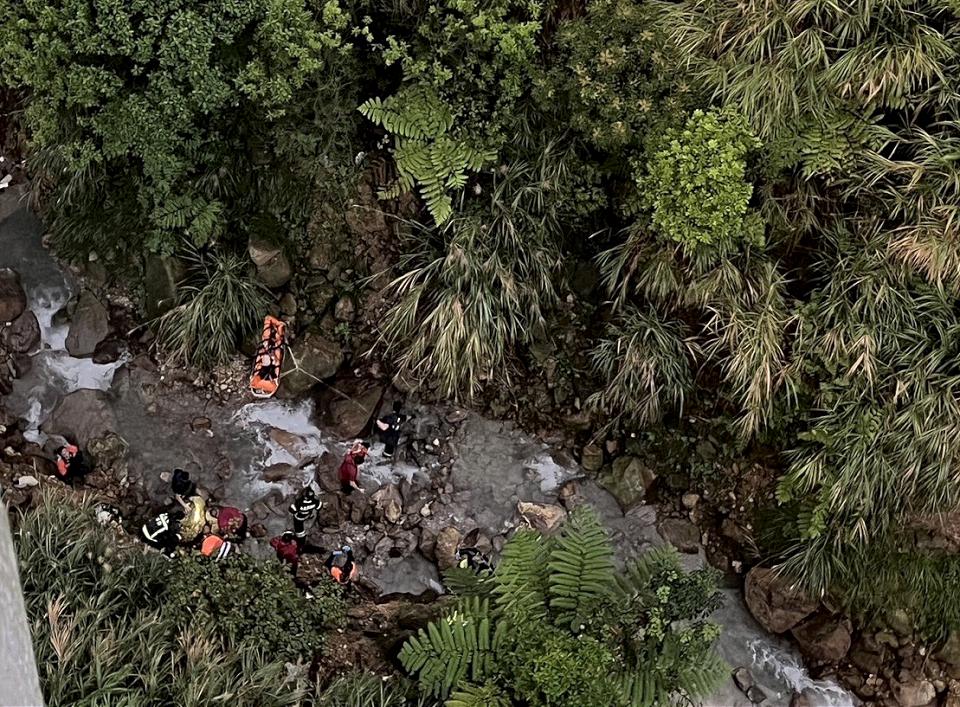 警方初步調查,男子年約52歲,身上沒有任何證件,警消前往溪谷中搶救時,發現他已經明顯死亡,因此裡用吊掛方式將死者從溪中搬運至橋上,至於死者為何會墜落橋下,還需要調查釐清。(記者余珩維/台北報導)