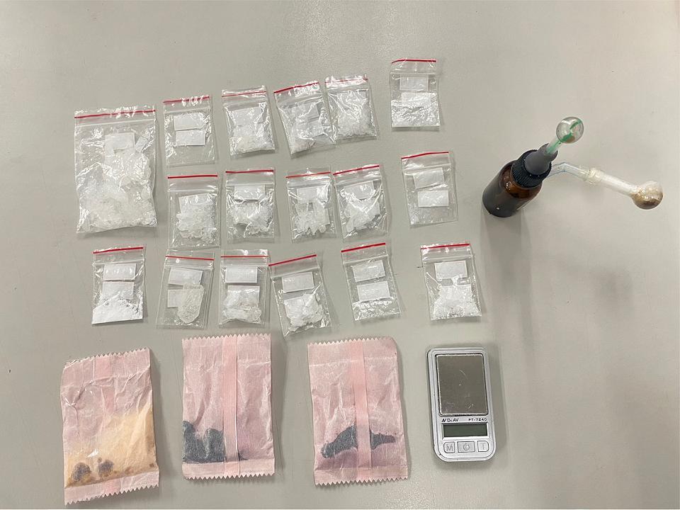 林口警分局表示,12日22時許在汽車旅館臨檢時,發現蔡姓男子(28歲)與女友形跡可疑,經盤查蔡男身揹3條通緝案,並起獲二級毒品安非他命16包、三級毒品K他命1包、混合毒品咖啡包3包、磅秤及毒品分裝袋,過程中蔡男還依依不捨與女友告別,詢後依違反毒品危害防制條例送辦。隨即又在另1房間查獲毒品咖啡包殘渣袋,檢驗呈K他命陽性反應,房內曾男(27歲)及王男(21歲)雖矢口否認,仍依違反毒品危害防制條例送辦。