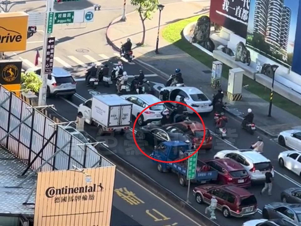 王姓男子開車追上詹姓男子車輛後,拿球棒當街砸車。翻攝黑色豪門企業