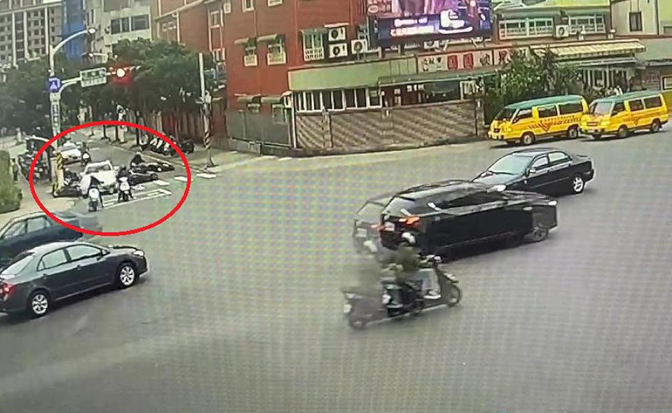 這汽車禍造成9機車造撞損8騎士受傷。讀者提供
