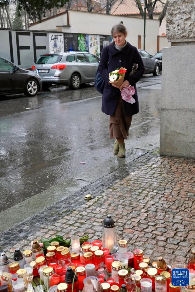 捷克民眾獻花點蠟燭 哀悼查理大學槍擊罹難者