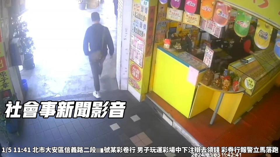 台北市信義路二段的彩券行,5日上午11時許1名男子前往店內,先查看美國NBA職籃機台後,到櫃檯向店員表示要投注2萬元,針對金塊隊與勇士隊比分,並稱稍後會付款給店家,沒想到比賽結束後,男子投注比賽並未中獎,竟藉故領錢為由逃離彩券行,店家不甘損失向警方報案。