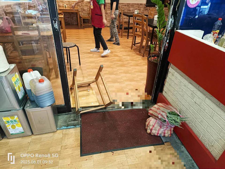 劉男持刀棍破壞店家時,在制止過程中雙方都遭刀劃傷。畫面讀者提供