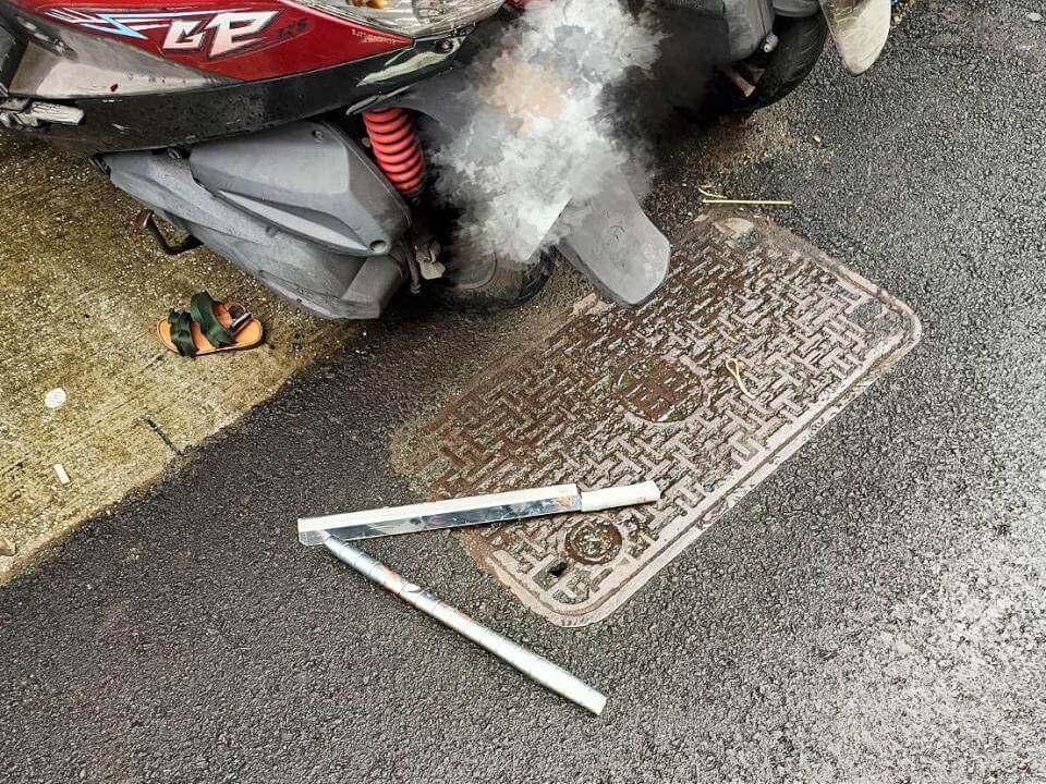 劉男將西瓜刀及鋁棍丟棄一旁。畫面讀者提供