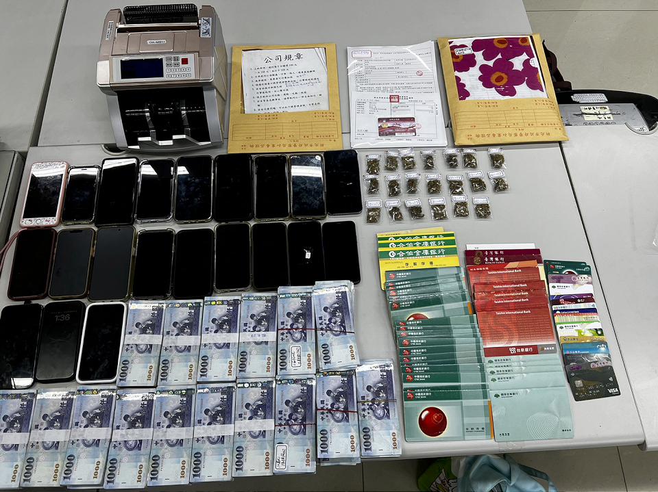 警方深入調查,位在台南的駿宸國際有限公司犯罪手法,是接獲假投資詐欺集團提供已無現金投資被害人名單後,慫恿被害人以低估不動產作為抵押及刷卡變現詐騙銀行,等到被害人獲取現金後再以此現金繼續投資,並藉上述手法收取高額利息牟利。因此兵分多路前往台南將王姓首腦(32歲)呂姓男子(32歲)、謝姓男子(31歲)、沈姓男子(23歲)、劉姓女子(40歲)及賴姓女子(33歲)等6人逮捕,當場扣智慧型手機16支、二級毒品大麻20包重24.77公克、現金129萬6600元、筆記型電腦2台、點鈔機1台、貸款文件1批、自然人憑證204張等不法贓證物,警詢後依詐欺及洗錢防制法等案移送偵辦。(記者陳品綸/新北報導)