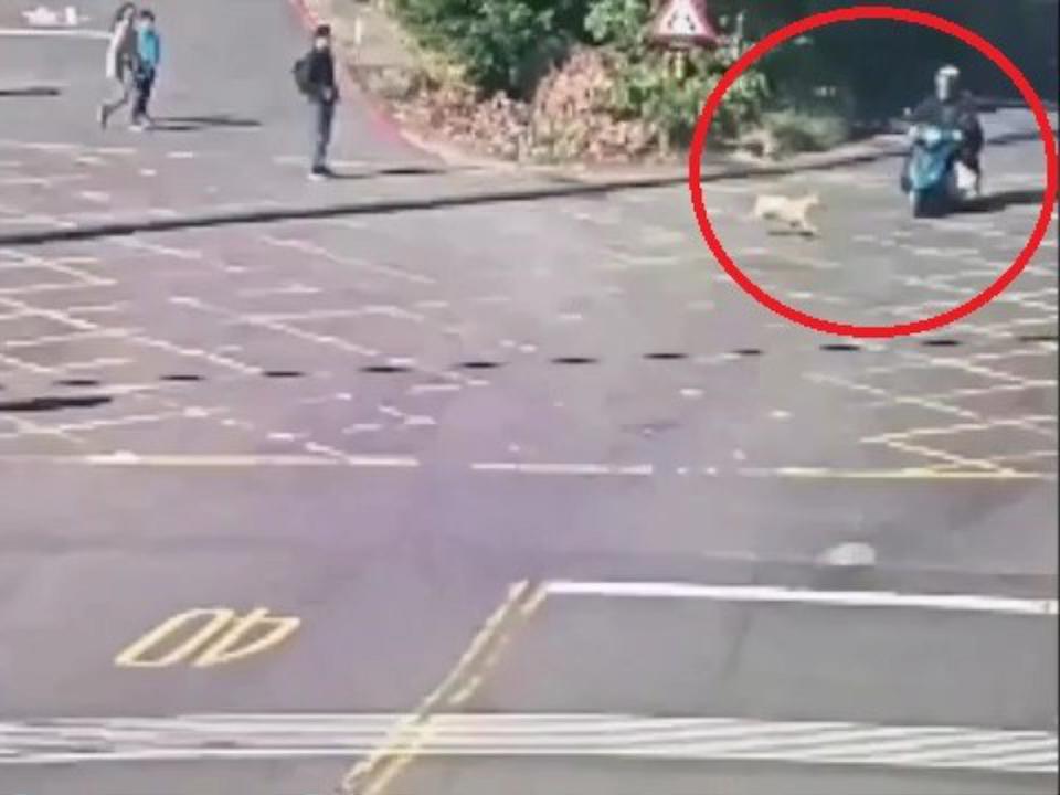 騎士發現小狗從路旁衝出已來不及煞車。讀者提供