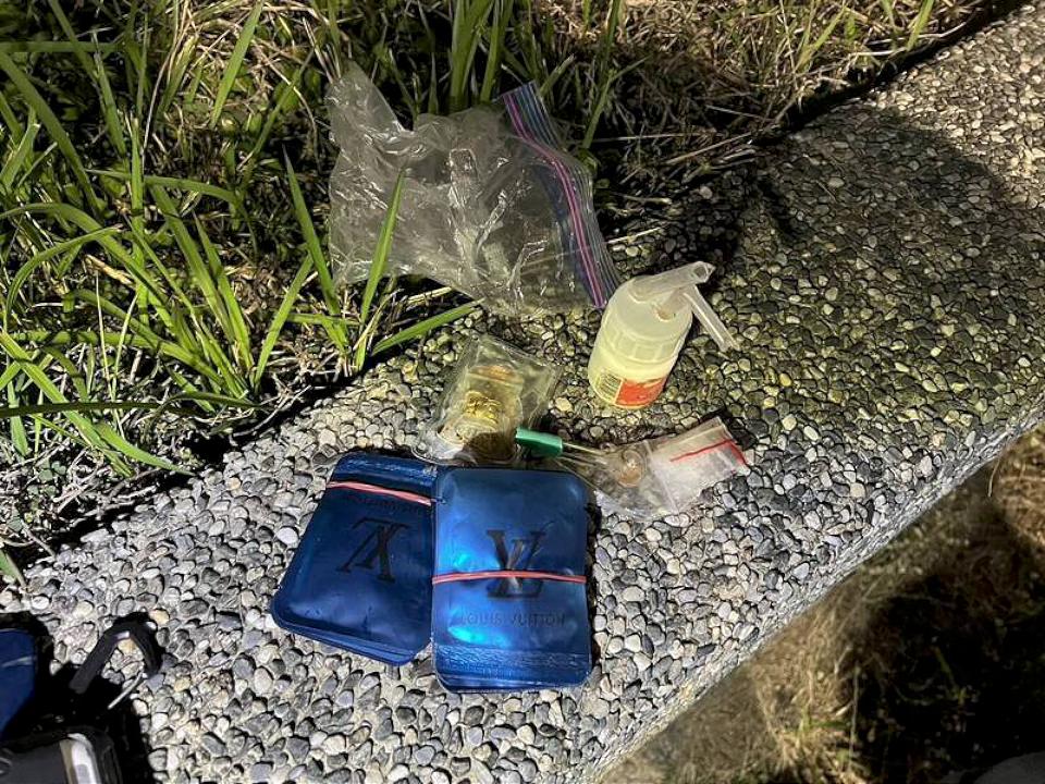 彭男車輛水箱冒煙,將車內的打批毒品班出車外遭查獲。讀者提供
