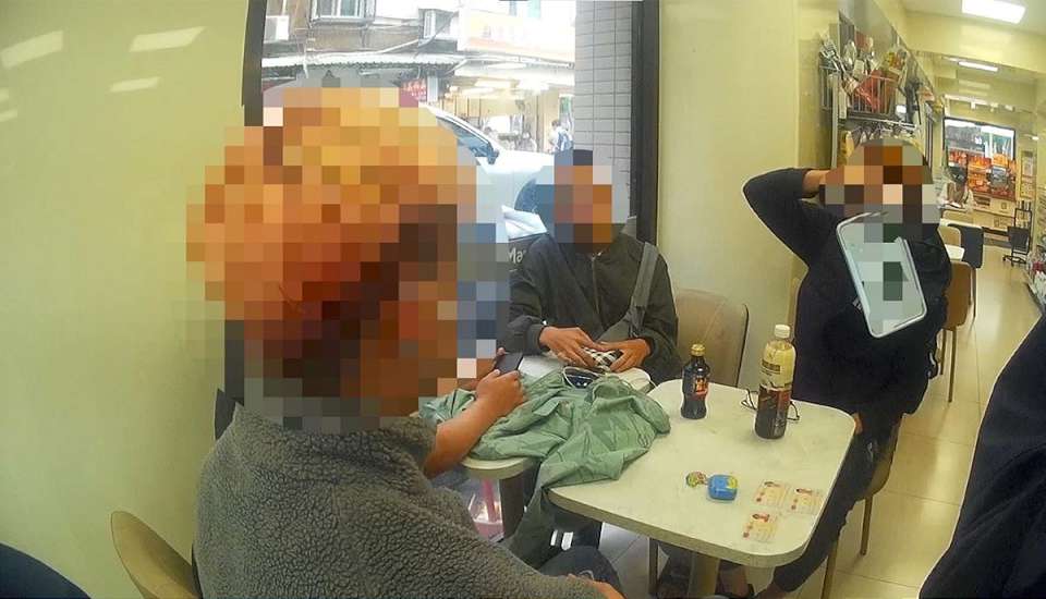 4名竊賊在超商喘氣休息時,警方上前逮人。讀者提供