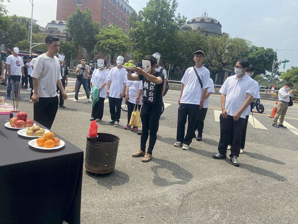 上百民眾不滿《菸防法》護紙菸上市免評估,在行政院門口辧告別式,幫《菸防法》送終。(圖/CLEAN AIR大聯盟)